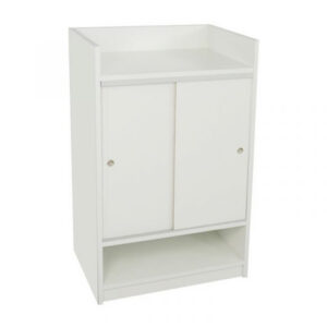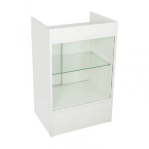 Glass Front Cash Register Stand Knocked Down - White