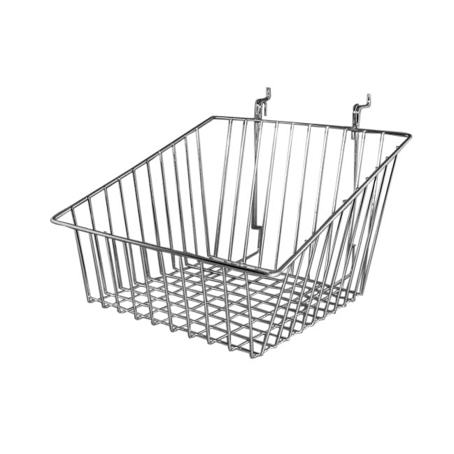 12″ Long X 12″ Deep X 8″ High Gridwall & Slatwall Slant Wire Basket With 4″ High Front Chrome