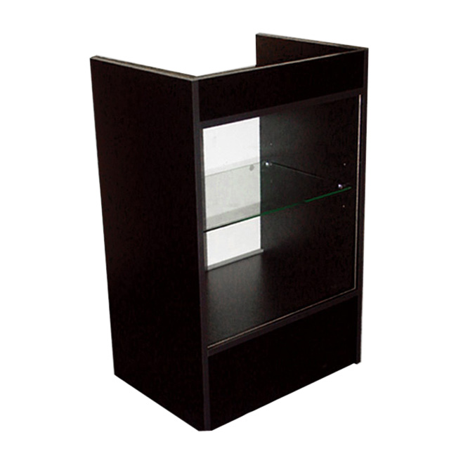 24″L Knocked Down Cash Register Counter With Glass Front Black